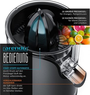 - Geschikt voor alle formaten: twee verwisselbare perskegels (klein en groot) garanderen optimale sapopbrengst, van compacte citroen tot ronde grapefruit.