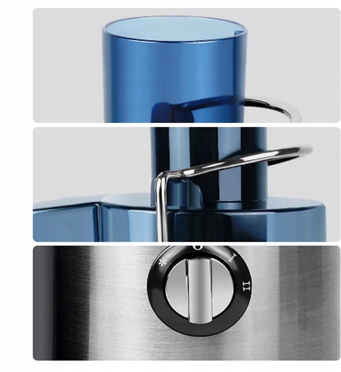 Veiligheid staat bij ons voorop. De sapcentrifuge is uitgerust met een vergrendelingssysteem dat alleen werkt als het deksel correct vastzit, zodat gevaarlijke situaties worden voorkomen. Gemaakt van voedselveilige materialen, garandeert het apparaat een gezond en veilig gebruik voor u en uw familie. Stabiliteit wordt gewaarborgd door antislipvoetjes, waardoor het apparaat stevig op zijn plek blijft tijdens het gebruik.