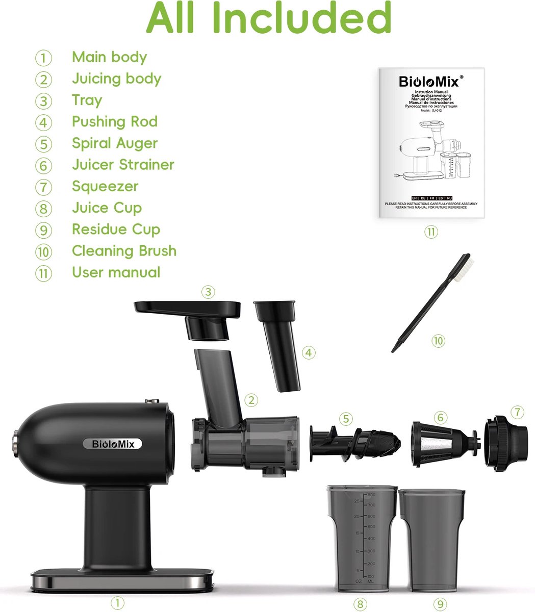 - Gezond en voedzaam: De koude persing behoudt de natuurlijke enzymen, vitaminen en mineralen in je fruit en groenten, zodat je optimaal profiteert van alle gezondheidsvoordelen.