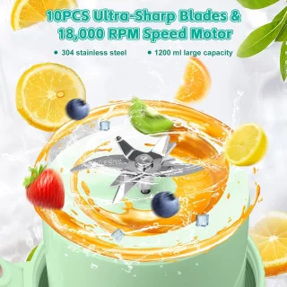 Of je nu een voedzame smoothie na de workout, een verfrissend fruitsapje voor tijdens het werk of een ijskoude shake onderweg wilt — deze draagbare sapcentrifuge levert snelle resultaten, eenvoudige bediening en het gemak van USB-opladen. Bestel vandaag nog en geniet snel van zelfgemaakte, gezonde dranken waar je ook bent.