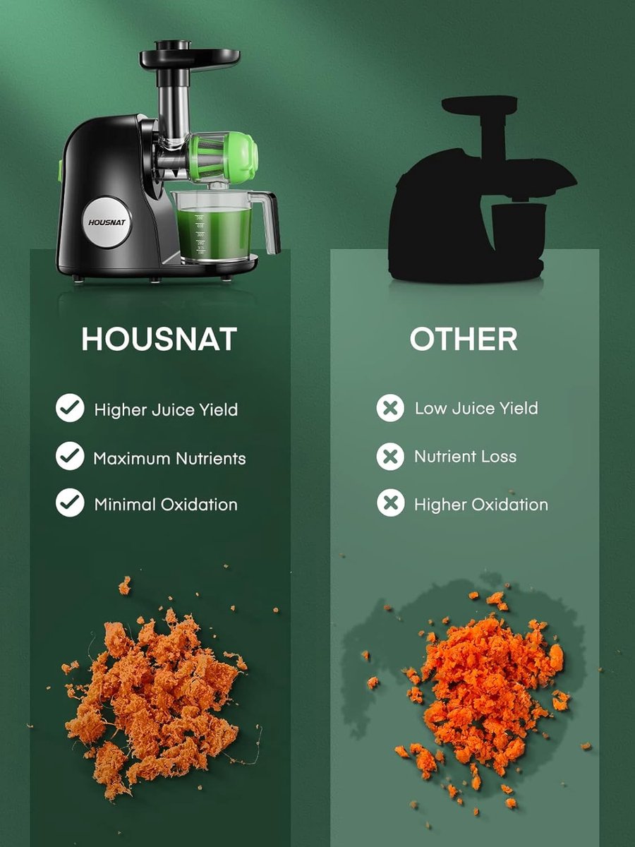De krachtige langzaam kauwtechniek met een snelheid van slechts 80 toeren per minuut zorgt voor een uitzonderlijke scheiding van sap en pulp. Hierdoor blijft het sap langer vers en bevat het meer natuurlijke voedingsstoffen en vitamines. Door het low-temperature persen blijven de smaken en gezondheidsvoordelen optimaal behouden, zodat jij kunt genieten van de puurste drankjes, rijk aan natuurlijke stoffen.