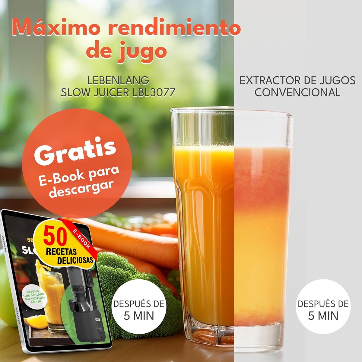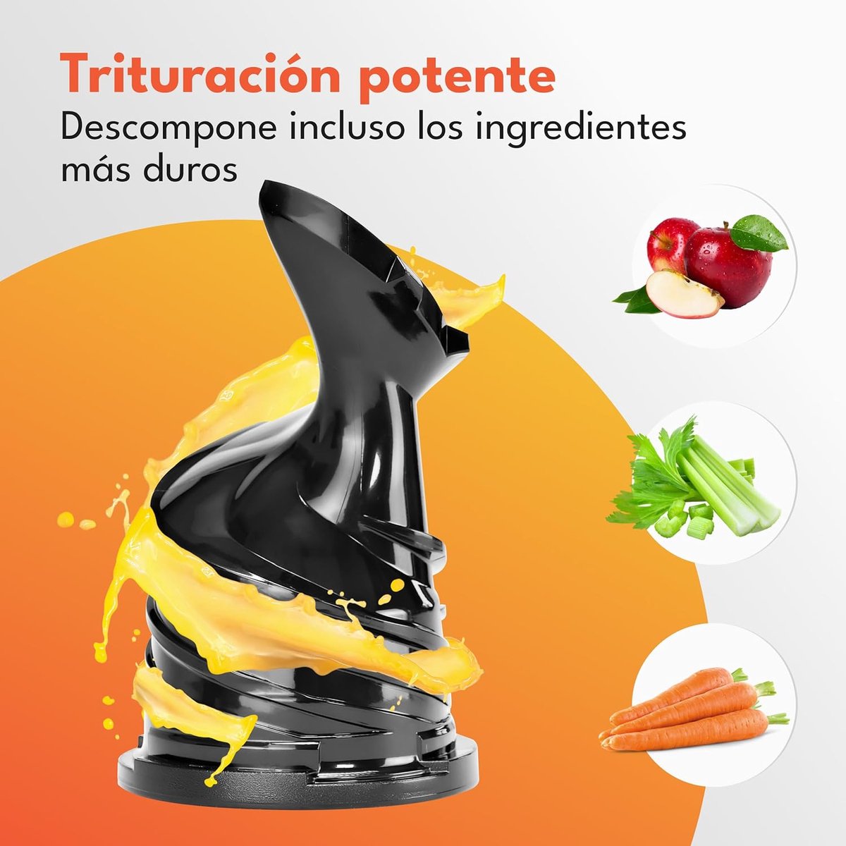 Wil je elke dag genieten van verse, gezonde sapjes boordevol vitaminen en smaken? Onze krachtige Slowjuicer is de perfecte keuze! Met een robuuste motor van 250 W haalt deze slowjuicer maar liefst 99,9% meer voedingsstoffen uit je ingrediënten. Dankzij het lage toerental en de innovatieve persdruk blijft je sap vol van smaak en waardevolle vitaminen, zonder verhitting. Zo geniet je optimaal van de natuurlijke smaken en voedingsstoffen in je sapje—volledig bewaakt en zonder verlies van vitaliteit.