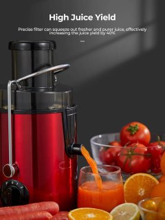 - Hygiënisch en zuiver sap: Het brede roestvrijstalen maalrooster scheidt vruchtvlees effectief, terwijl het drie-laags netfilter zorgt voor helder en smaakvol sap boordevol voedingsstoffen.