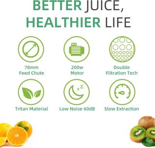 Of je nu begint met een dagelijkse sapkuur of je groene saprecepten wilt uitbreiden: deze slowjuicer levert constante kwaliteit, gemakkelijk onderhoud en uitstekende sapopbrengst. Bestel nu en ervaar gezondere, smaakvollere sappen elke dag.