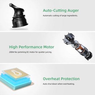 - Krachtig en robuust: De 200W motor verwerkt moeiteloos harde wortels en andere vezelrijke groenten, maar is ook geschikt voor zacht fruit.